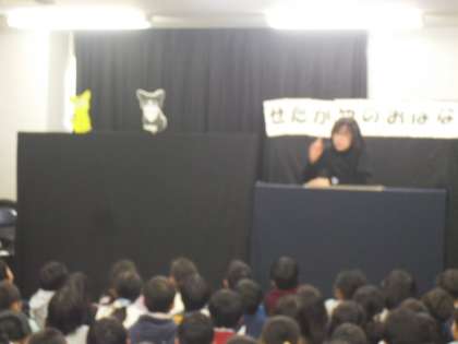 今日は、三年生が地域の方から地域に関するお話の読み聞かせをしていただきました。松丘周辺の「ボロ市」や「蛇崩川」「豪徳寺」などに関することについて、紙芝居を通じて学びました。身近にあってもなかなか知ることがなかったことも発見でき、子供たちは驚いていました。今回聞いた話を3学期の総合的な学習に時間にも生かしていきます。