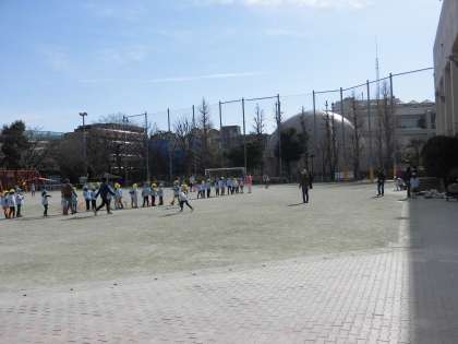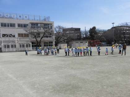 今日は、給食時間中に松丘幼稚園の園児が来校しました。校庭で凧揚げをするためです。自分たちで作った凧を広い校庭で思いっきり走りあげていました。一人一人が楽しくあげている姿が見られました。