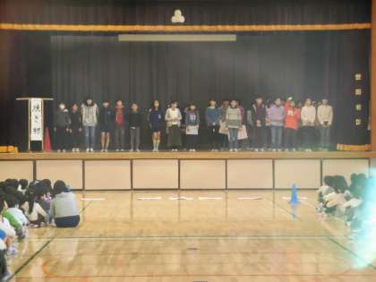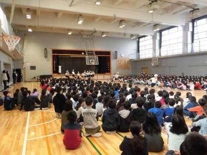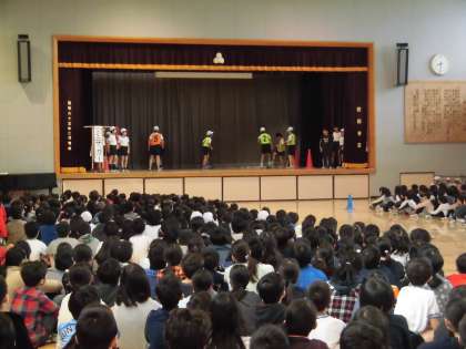 今日はクラブ発表集会を行いました。展示発表をするクラブを中心の発表です。各クラブとも、一年間活動してきた内容を聞き手にはっきりと伝えていました。運動クラブの発表では、バスケットボールクラブのゴールが決まった瞬間ひときわ大きな歓声があがり、盛り上がりました。