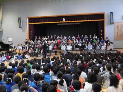 今日は、6年生を送る会を開催しました。各学年から、6年生に対して感謝の気持ちを込めて出し物がありました。歌、踊り、呼びかけなど各学年工夫をこらして表現しました。今年度は先生たちからのサプライズの出し物もあり、全校で盛り上がりました。最後に6年生からお礼の意味を込めた呼びかけと合奏。6年生の立派な姿を下学年に見せてくれました。6年生と過ごすとてもよい最後の行事になりました。