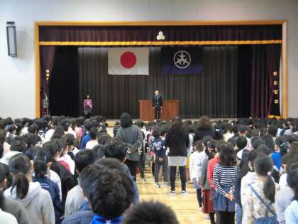今日は一年間の締めくくりとして修了式がありました。各クラス、代表児童が修了証を受け取り、一年の振り返りをしました。一年前の自分と今の自分とを比べ、成長したこと、これからがんばりたいことを思い返しました。代表児童の言葉もはっきりと伝えていました。また、企画代表委員からユニセフ募金のお知らせもありました。1年生から5年生までは、一学年上がり、5年生は最高学年になります。6年生は卒業し、中学生になります。一人ひとりが目標をもち、新年度を迎えてほしいです。