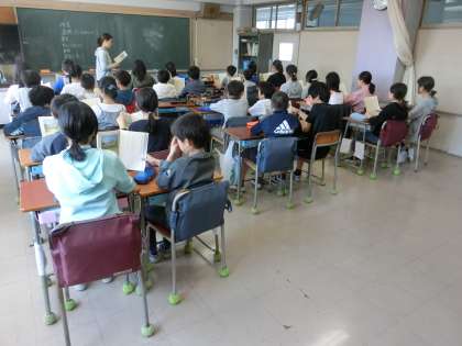 アクティブな休み時間から、ビシッと気持ちを切り替えて、教科日本語の朗誦に取り組む6年生の姿もありました。生活規律や落ち着きのある学習習慣を定着させていくことが、全学年における当面の大きな目標です。