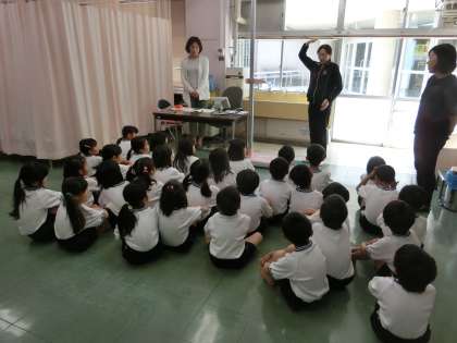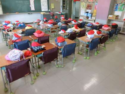 1年生にとっては、小学校で初めての計測の日です。教室の机上には、着替えを済ませた服がきちんと置かれていてお見事!! そして、保健室では、お口のチャックをしめて、行儀よく順番を待つ様子が見られました。体育座りの姿勢もきれいですね。