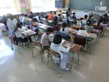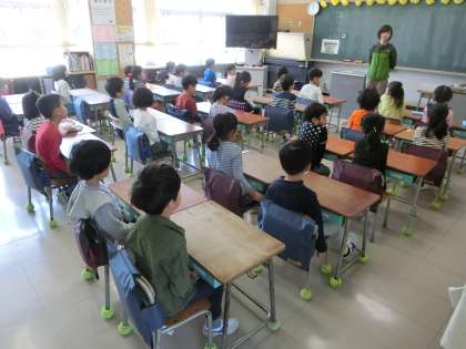 始業時の号令とあいさつの練習をしているクラスもありました。背筋がピンと伸びて、気持ちのよいあいさつから授業がスタートしていて立派でした。