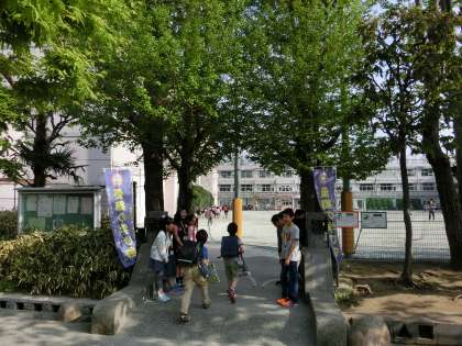 南門に5年生が立ち、登校してくる子とあいさつのキャッチボールを繰り広げています。当番のお兄さん、お姉さんよりも先にボールを投げている下学年の子がいましたね。