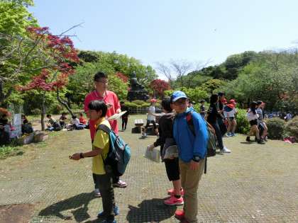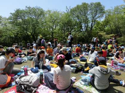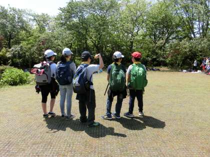 無事に全ての班が第二チェックポイントに到着しました。待ち遠しかったお昼の時間です。緑に包まれて食べるお弁当は、おいしさ倍増ですね。