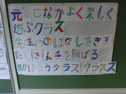 学級開きが終わり、徐々に各学級の目標が決まりつつあります。子どもたちの意欲、願いがこめられた目標へ向かって、スタートを切っている3年生。これは1組、2組の目標です。