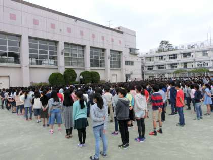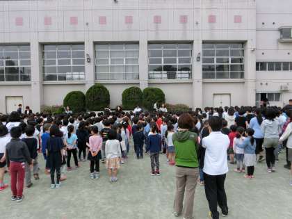 朝会が終わって、校舎への入室です。どの学年も最後まで私語がなく、しっかりと行進をしているのが素晴らしかったです。これも、本校のかがやきの一つですね。