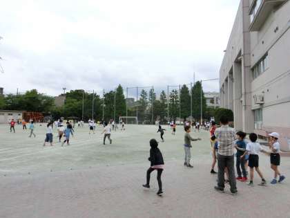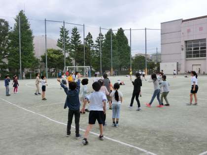 本日は4年生がロング昼休みをエンジョイしています。クラスのみんなと鬼ごっこをしたり、ドッジボールをしたりして笑顔が花開いています。遊びに夢中の子どもたちって、本当にいきいきとした表情ですね。