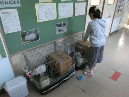 今朝もオセロとブランのお世話を飼育委員がしてくれています。