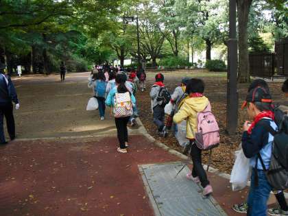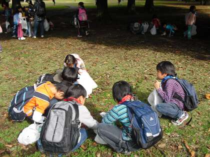 どんぐりや落ち葉をたくさん拾って飾りをつくりました。