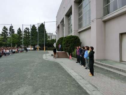 今週着任した教職員にスポットを当て、趣味、出身地、嗜好などをクイズにした集会が開かれました。