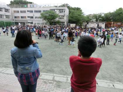 在校生のみんなは、校庭を活用した三択クイズに、嬉々としてチャレンジしていました。果たして何問正解したかな? きっと、新メンバーの意外な一面を知ったことでしょうね。