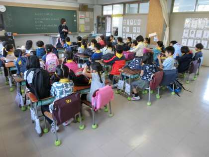 昨日のお昼前は雷鳴がとどろく、不安定な空模様でしたが、今朝はスッキリと晴れた空がまぶしいばかり。遠足へ出発する1年生は、特に張り切って登校してきました。教室をのぞくと、はやる気持ちをおさえて、先生のお話をしっかりと聞いていました。すてきな一日になりそうですね。