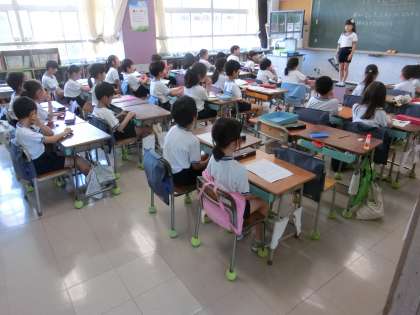 2年生がスピーチ発表会の日がやってきました。教室に常時掲示してある「声のものさし」を活用しつつ、めあての確認から授業が始まりました。各自が最終練習を終えたら、いよいよ発表の出番となります。事前に書いてあった発表原稿を見ることなく、自分の思いを伝え、聞き手のみんなも静かに耳を傾けていました。