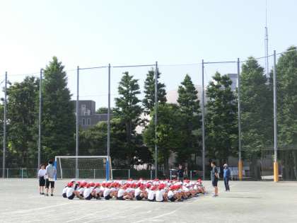 朝早くから体操着姿のリレー代表が校庭に集まってきました。いよいよ3週に及ぶ練習がスタートです。