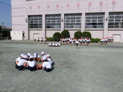 全体でのミーティング終了後、さっそく子どもたち同士で打ち合わせをしたり、バトン受け渡しの練習をしたりしていました。