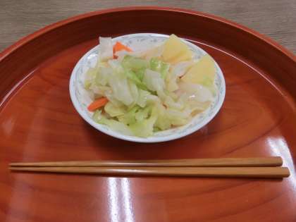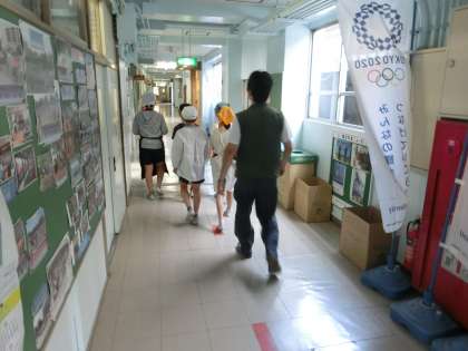 2校時後半、校内のあちこちに出来立ての温野菜プレートを手にした5年1組メンバーが出没。主事さんにもそれを手渡して、とても喜ばれていました。