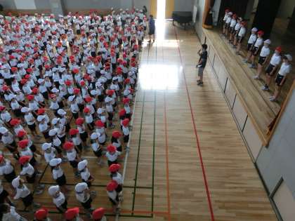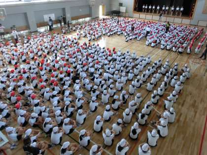 まずは、集合時の態度が重要です。そこは誇り高き松丘小学校、今さら多くの指導を必要とはしていません。体育館に800人以上が揃っても、ざわつき感はゼロです。