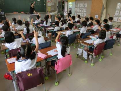 ひらがな「す」について書き順や、上手に記すコツを教わりながら、丁寧に硬筆で書いていたのは1年生。