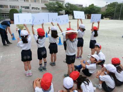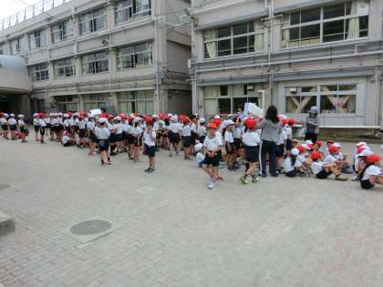 150人以上の子が短距離走に出場する訳ですから、競技の前に正しく整列するだけでも、2年生にとっては大変なことです。自分は「○コース、□レース」を確実に覚え、なが〜い列における自分の位置を見出さなければなりません。それは小規模校の児童にはない苦労でもあり、松丘だからこそ経験できる学びともなります。一つ一つの学習が、必ず将来に生かされると信じています。前向きにレッツゴー!