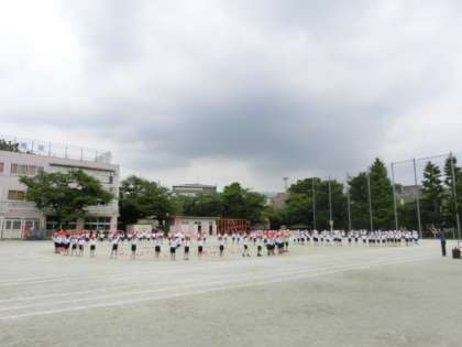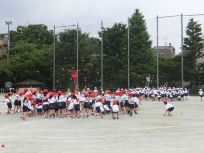1年生の楽しい玉入れは、見ている側にとってもfun.競技と踊りのコラボになっていますが、子どもたちの思考は、玉入れに全力投球している感じの熱い戦いが繰り広げられていました。本日は赤組の勝利でした。