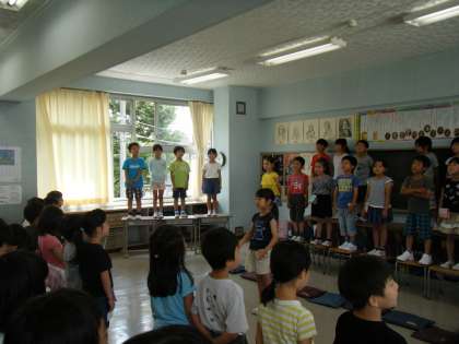 16日(土)の開校記念集会に向けて、2年生が1年生に「ありがとう松丘小」の歌を教えてあげていました。ちょっぴり高い位置に立った2年生と、1年生が向かい合ってすてきな声のシャワーを浴びることができました♪