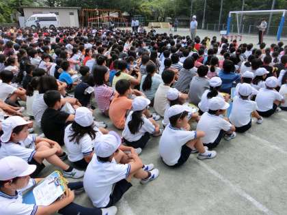 火災想定の訓練が行われました。お約束を守っての避難、集合してからの態度、学年が上になるほど模範的で、校長先生からもお褒めをいただきました。避難自体は5分40秒で完結しました。