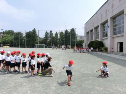 ロング昼休みの1年生は、全学級が長縄跳びで遊んでいました。先週の体育朝会をきっかけに、長縄への関心が高まってきているようです。しばらく先の目標である8の字跳びのハードルが少しでも低くなるよう、あの手この手で子どもたちが安心して取り組めるよう、先生方も工夫を凝らしていますよ。おかげで、楽しそうだなぁ。