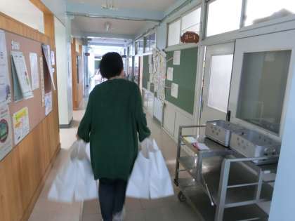 子どもたちには、「食べるのはおうちに帰ってから」と伝えてあります。