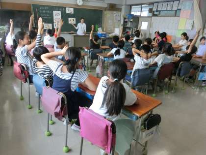 学年があがるにつれて、自主的な挙手を控えてしまう子が多くなりがちですが、松丘の最上級生はひと味も、ふた味も違います。よく手が挙がること、挙がること! 壮観とも言える授業風景です。