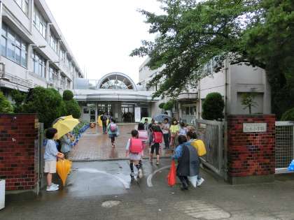 あいさつ運動、3日目の朝です。再び雨が降り出してしまいましたが、当番の3年生が正門と南門に立って、元気いっぱい、登校してくる松小の仲間を迎え入れてくれていました。