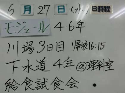 画像は職員室内のスケジュール表です。16時15分、無事の帰校を教職員一同待っています。