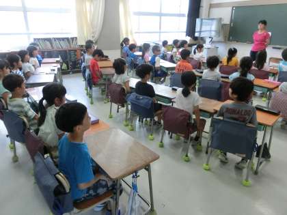 5校時開始のタイミングで校内を歩いていたら、丁度2年生が授業開始の挨拶をしているところに出くわしました。廊下から教室内に目をやると、模範的な姿勢の子がズラリ! カメラを向けられたから、急にポーズをとったのではありません。日常化していくよう、見守っていきます。