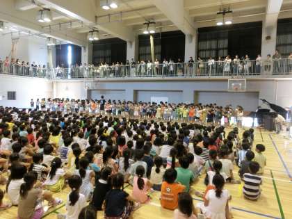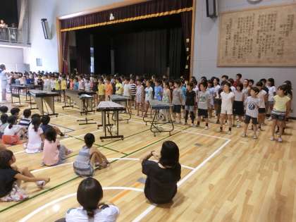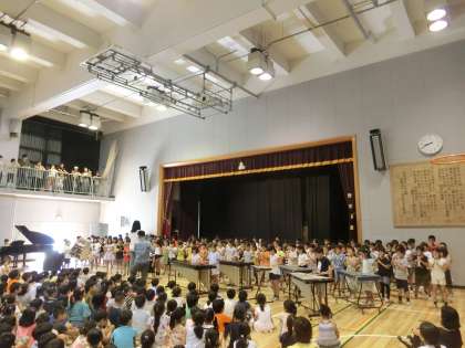 3年生は合唱『青空マーチ』、リコーダー演奏『地平線』。4年生は合唱『チャレンジ』、合奏『ルージュの伝言』でした。吹き出してくる汗を忘れさせてくれるような、快い音色にいつしか会場は包まれていました。