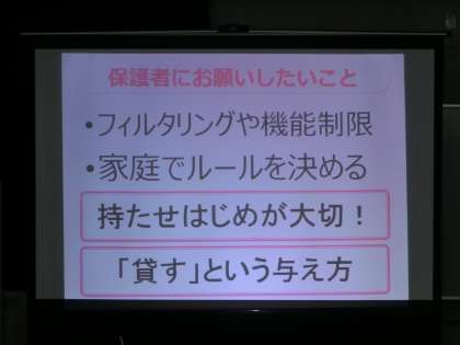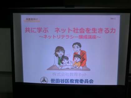 本区では、数年前から保護者を対象とした、情報モラル講習会を毎年、実施しています。本日、保護者会の前に開催されました。