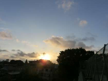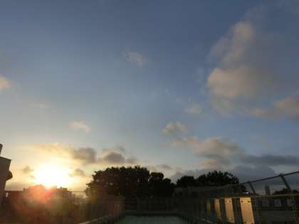 松丘小学校の屋上では、午前5時前、サンライズを迎えました。夏至の頃に比べると、これでも日の出時刻が遅くなっているのです。