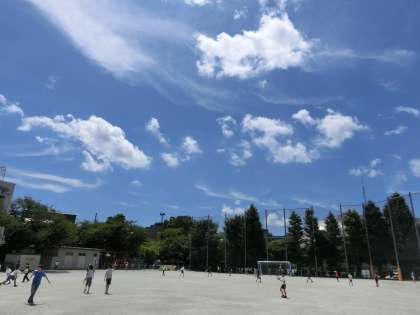 中休み、いつもより校庭で遊ぶ子の姿が少な目です。暑さのせい? いえ、どうやら、松丘まつりへ向けての準備に大童というクラスが、結構あるようなのです。がんばって!