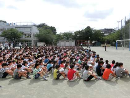 おとといの朝会で聞いた、校長先生からのお話を実行に移す時がやって来ました。今朝は、教室で子どもたちだけで過ごしている際、地震が発生という想定の訓練を行いました。先生は近くにいません。放送を聞いて、机の下に身を隠し、黙って次の指示を待った子どもたちでした。