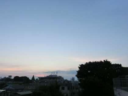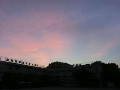 刻一刻と色味を変えていく午前4時すぎの東の空。今日はついに猛暑日を記録するのでしょうか。夜明け前から校内も熱気が凄いです。