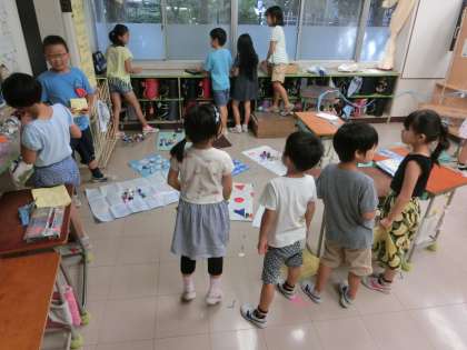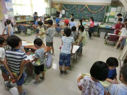 こちらは3年3組と4組の様子です。一番乗りで、コーナーを楽しませてもらっちゃいましたよ。