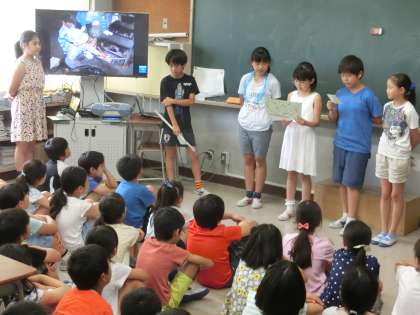 とても素晴らしいプレゼンテーションであり、爽やかな川場の風が吹き抜けていった、5年生と4年生の充実した交流のひとときでした。