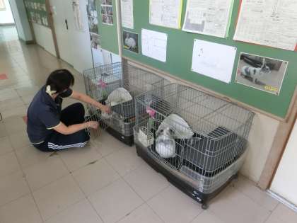 あまりの暑さに、先週から人気者たちは、暮らし慣れた廊下から空調が効いた校長室内へと避難することが多くなりました。
