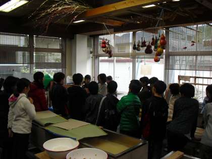 11月19日〜11月26日にかけて6年の4クラスが区内の山崎小学校内にある伝統工芸室にて、卒業証書の紙すきを体験してきました。