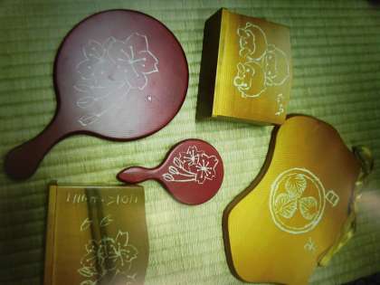 それぞれのデザインを手鏡や写真立てなどに彫っていきます。