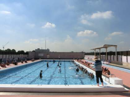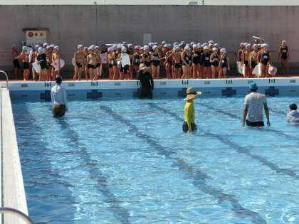 水泳指導には本日も大勢の子どもたちが集まっています。第一部は中学年、明日の検定へ向けた課題別の練習を行っていました。