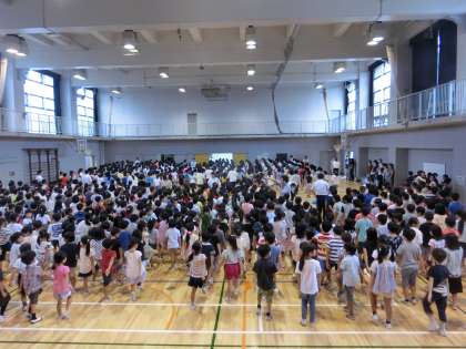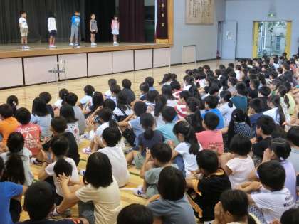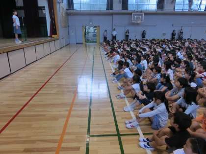 校長先生からは夏休みの出来事、2学期への期待等のメッセージが子どもたちへ贈られました。15分間に及ぶ長いお話でしたが、しっかりと傾聴できた松丘小の児童、さすが!!です。