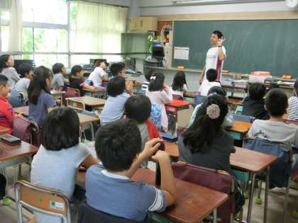 担任の先生が夏休みの思い出を公表してくださっています。みんな瞳を輝かせ、身を乗り出すようにして、話に聞き入っていました。高学年になると特に、子どもたちは先生のオフに関心が高くなります。たまたま廊下を通りかかった私も、足を止めずにはいられません。面白かったね!