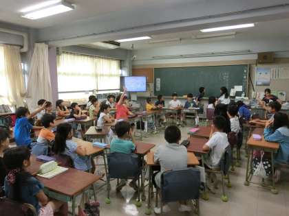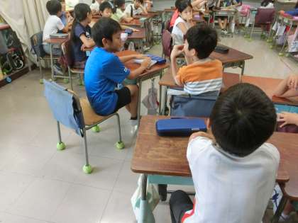 全体で意見を交わしたり、小グループで交流したりしながら、議題について話し合いを進めていました。4年生でも「なるほど」と感心するような、明確な根拠に基づく考えを発表できているのが印象的でした。