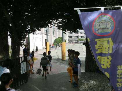 開門直前の時間帯、まぶしい日ざしとにわか雨のコラボが起こりました。珍現象の発生に、6年生を中心に盛り上がっていました。